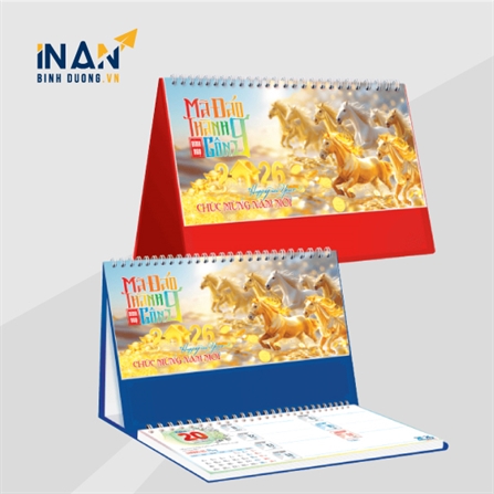 Dịch vụ in lịch Tết 2026 tại In Ấn Bình Dương với chủ đề “Mã Đáo Thành Công”. Thiết kế sang trọng,…