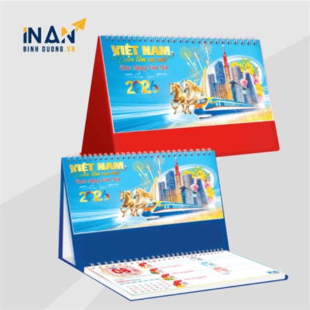 Dịch vụ in lịch Tết 2026 chủ đề “Việt Nam Vươn Tầm Cao Mới” tại In Ấn Bình Dương. Thiết kế độc…