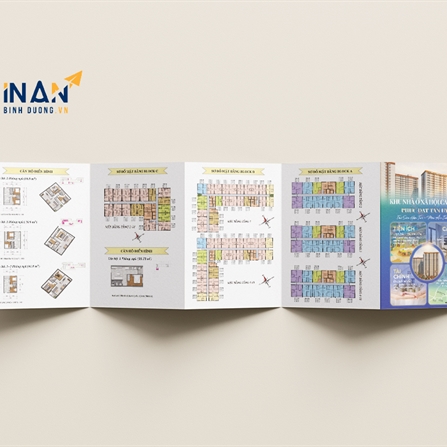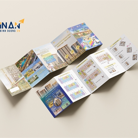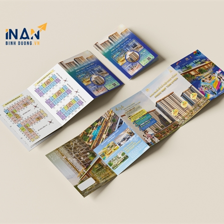 Tờ rơi gấp là một trong những ấn phẩm marketing truyền thống hiệu quả nhất trong lĩnh vực bất động sản. Trong dự án này, In Ấn Bình Dương đã thực hiện bộ tờ rơi gấp nhiều trang cho một dự án chung cư cao cấp. Sản phẩm được thiết kế hiện đại, hình ảnh sống động, bố cục tối ưu, đảm bảo truyền tải đầy đủ thông tin về tiện ích, mặt bằng, chính sách bán hàng và các điểm nổi bật của dự án.